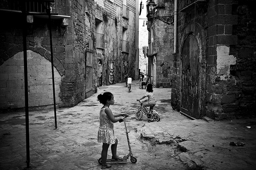 3878010421_b7c304b699-2La narrazione della Ferrante ne L’amica geniale è un imbuto oleato nel quale si scivola senza mai intoppi, presi dal carosello della vita di un rione napoletano negli anni ’50 dove le protagoniste nascono e vivono la propria adolescenza: non c’è mai un meccanismo che si inceppa o un nome che vi avanza. Non sono una critica, ma ho letto pochi libri che abbiano un ritmo narrativo così rapido, senza mai incepparsi.
